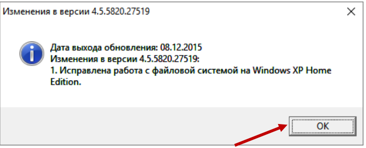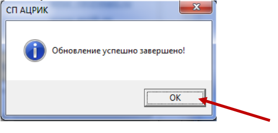 После успешного обновления появится диалоговое окно: